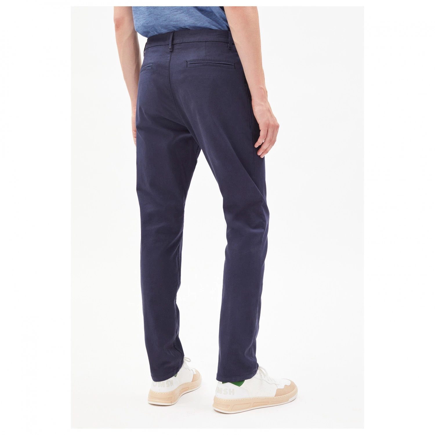 Le pantalon Aato Light de l’entreprise ARMEDANGELS est fabriqué de manière durable, sans recours aux pesticides toxiques, car il est en coton bio et équitable, issu d’une production contrôlée. De plus, du coton recyclé et de l’élasthanne sont utilisés pour garantir une liberté de mouvement et un confort optimaux. Le tissu est respirant et agréablement doux sur la peau.