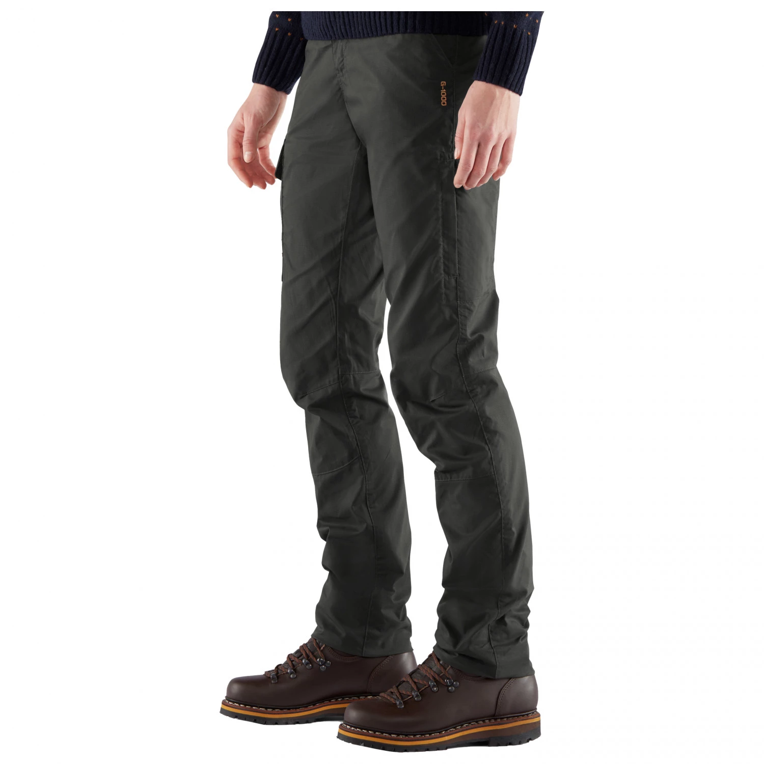 Ce pantalon est composé du tissu bien pensé G-1000 Lite Eco Stretch. Le mélange de polyester recyclé et de coton biologique est particulièrement solide, extensible et agréablement respirant. L’imperméabilisation durable à base de cire est fortement hydrofuge et coupe-vent. Le pantalon a une coupe incroyablement sportive et parfaitement adaptée à l’anatomie féminine. Il est légèrement plus haut au niveau des hanches et doté de genoux préformés. Ainsi, il est très confortable et offre une excellente liberté de mouvement. Les deux poches avant, les deux poches arrière avec rabat et bouton-pression et les deux poches sur les cuisses (une avec un zip, l’autre avec un bouton) ne laissent rien à désirer en matière d’espace de rangement. Ce modèle a tout d’un bon pantalon de trekking !